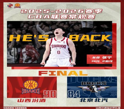 戰(zhàn)報張寧復出山西汾酒9084力克北京北汽