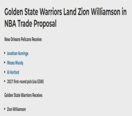 什么?勇士竟然是得到錫安最熱門的球隊(duì)?