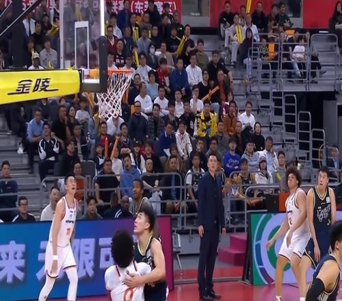 1分鐘后陳家政繼續(xù)緊逼貼身防守古德溫,古德溫憤怒地推開了陳家政的手臂,之后在擺脫過程中古德溫右手發(fā)力將陳家政推倒在地,裁判吹了古德溫犯規(guī)。